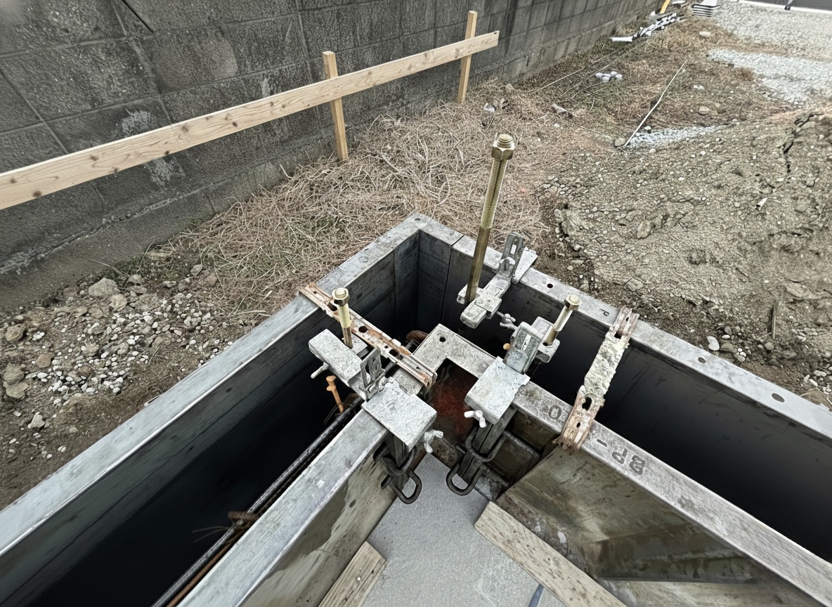 このあと、立ち上がりコンクリートを打設して養生期間を経て基礎工事完了となります。