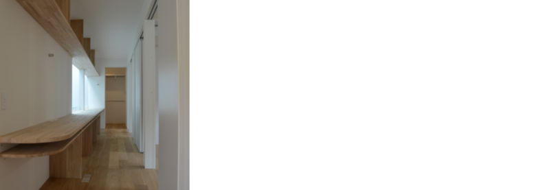 サンルームに沿って設けたロングデスクでは家族が並んで一緒に勉強をすることを想定している。
