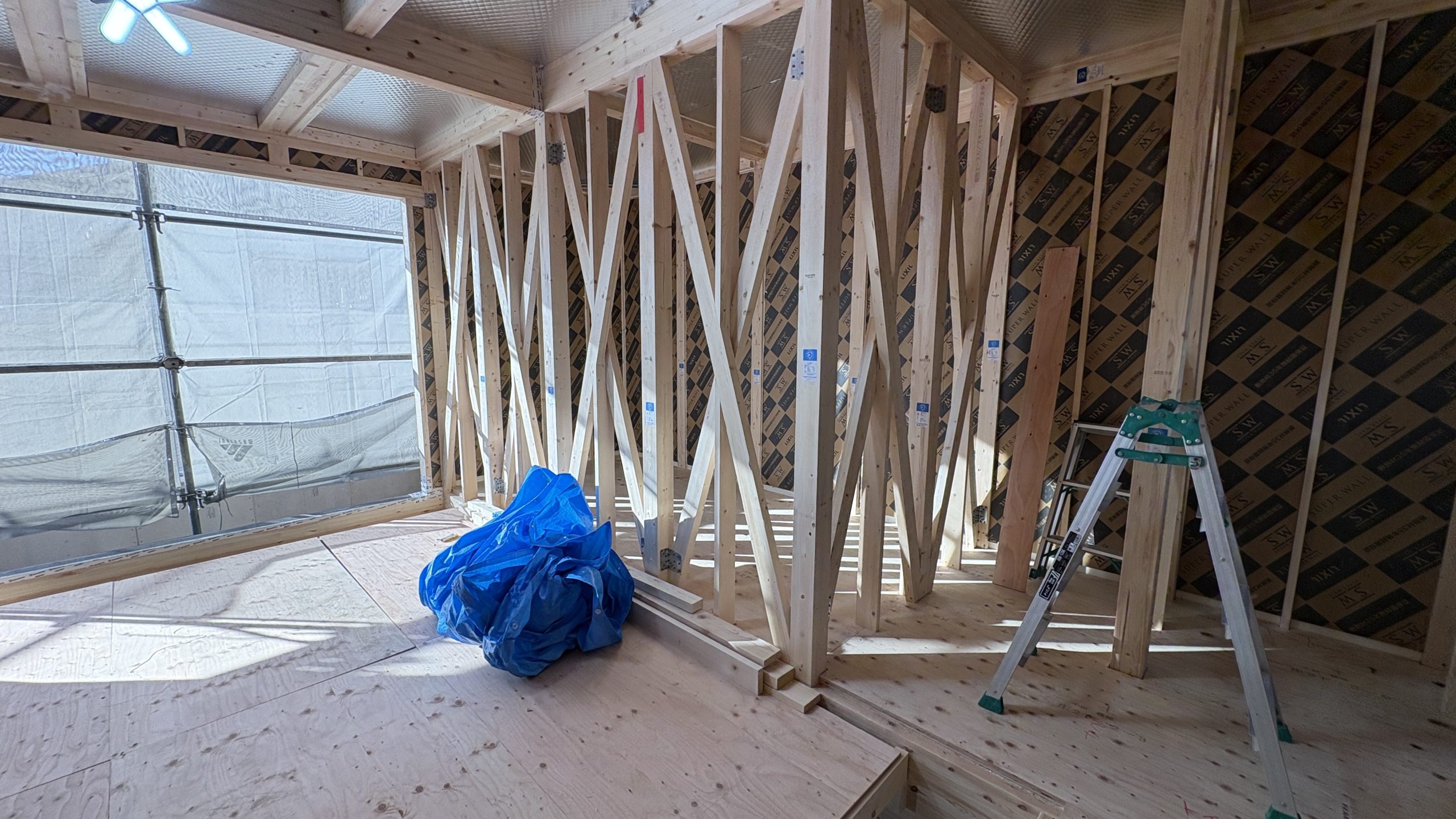 竣工してしまうと見えなくなる、柱や梁の構造体・快適な暮らしを創る断熱材や家を守る防水シート。