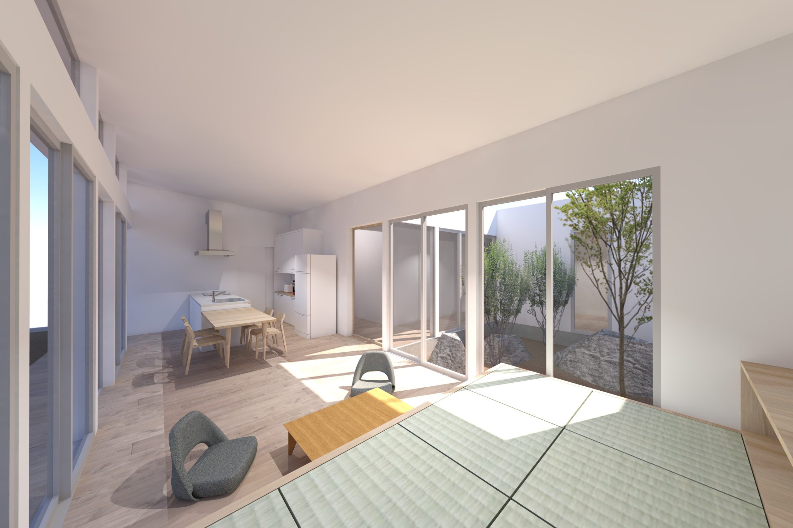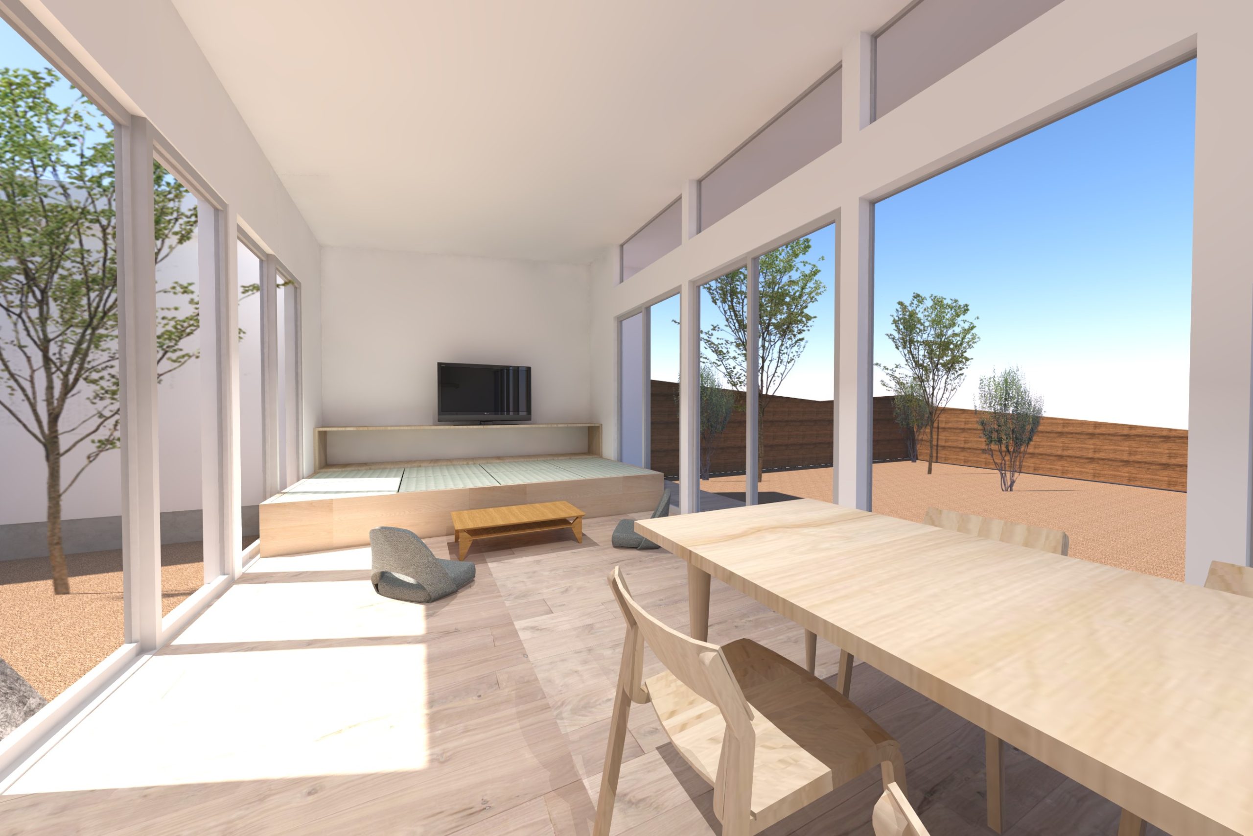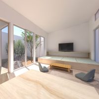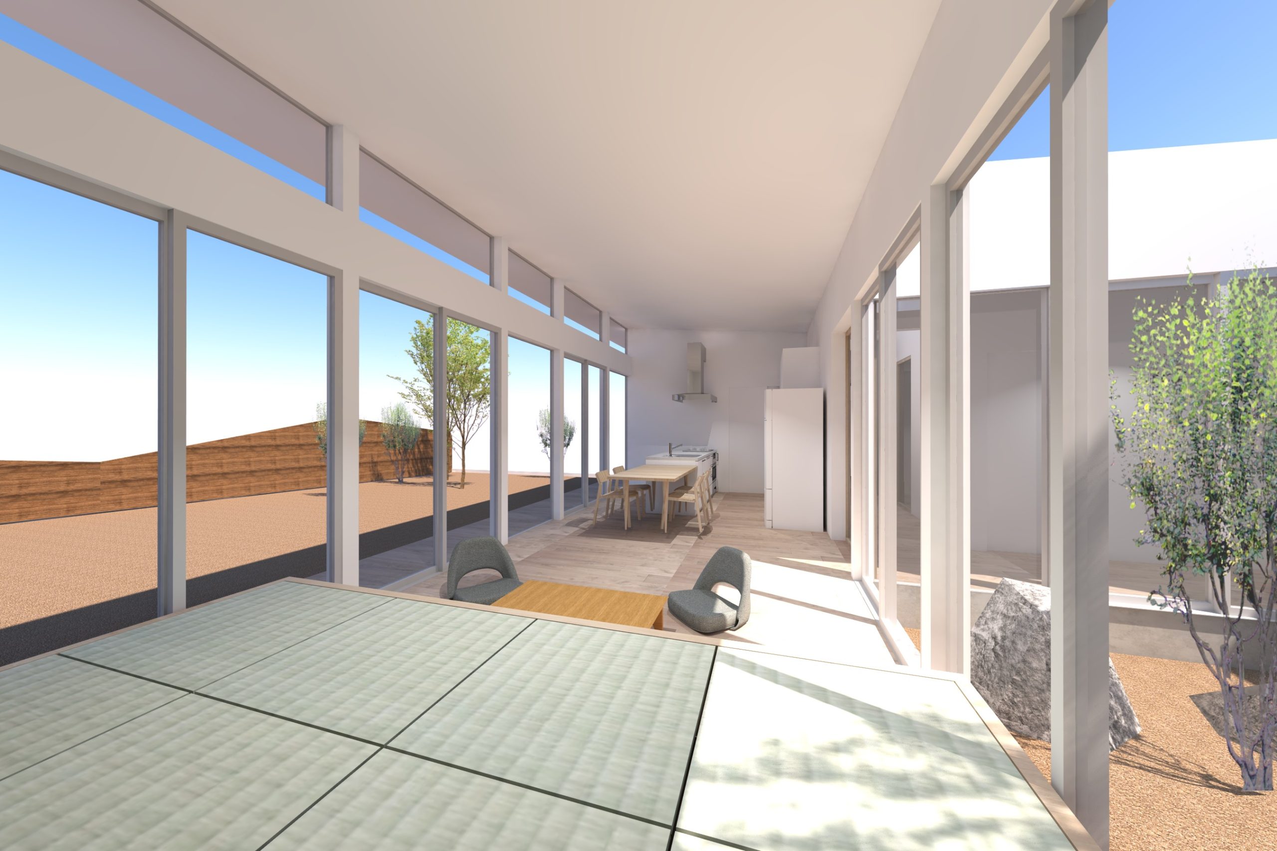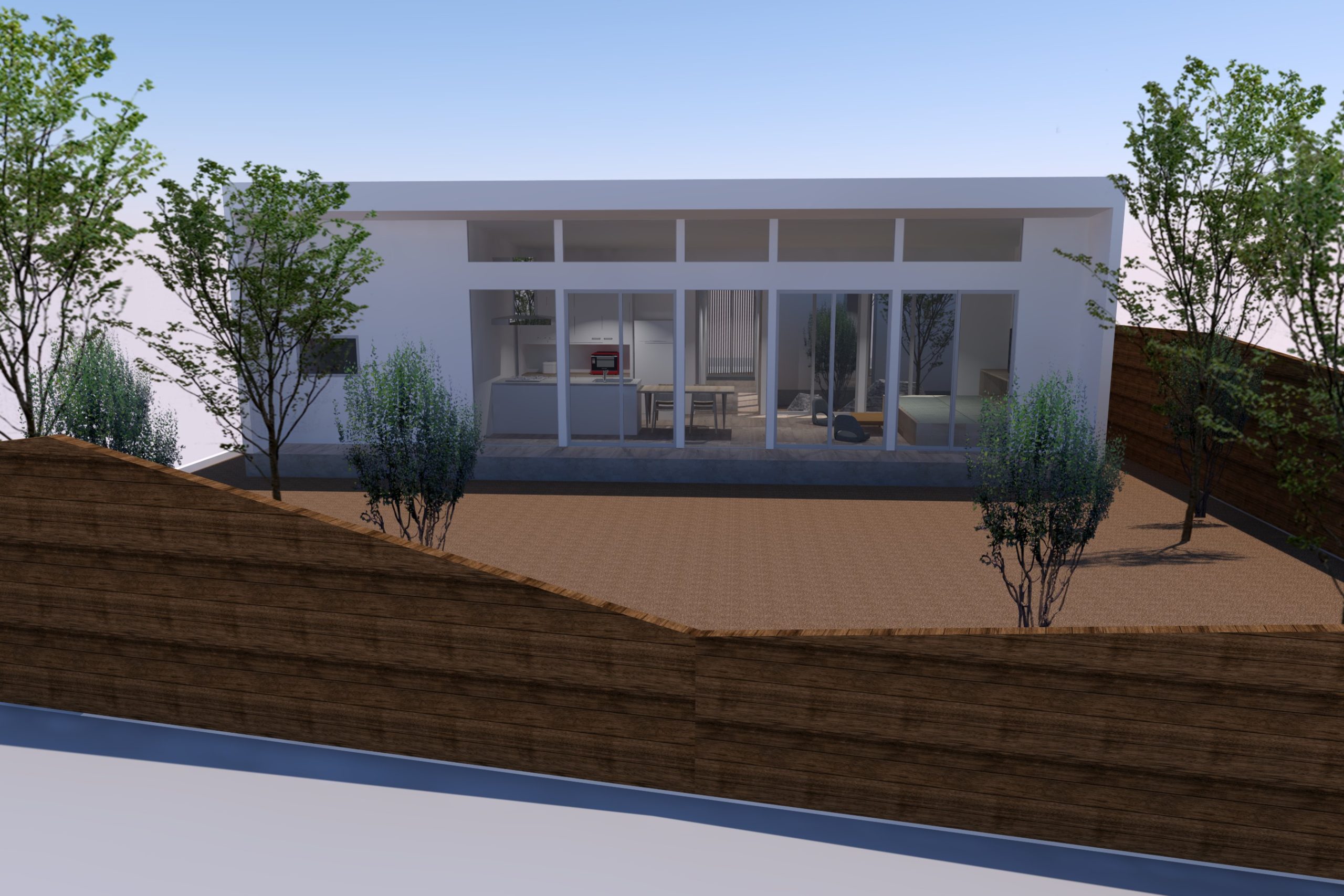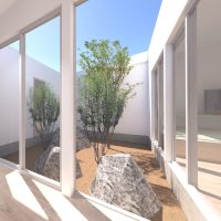 4. 中庭と外庭をつなぐリビングがある平屋の家
