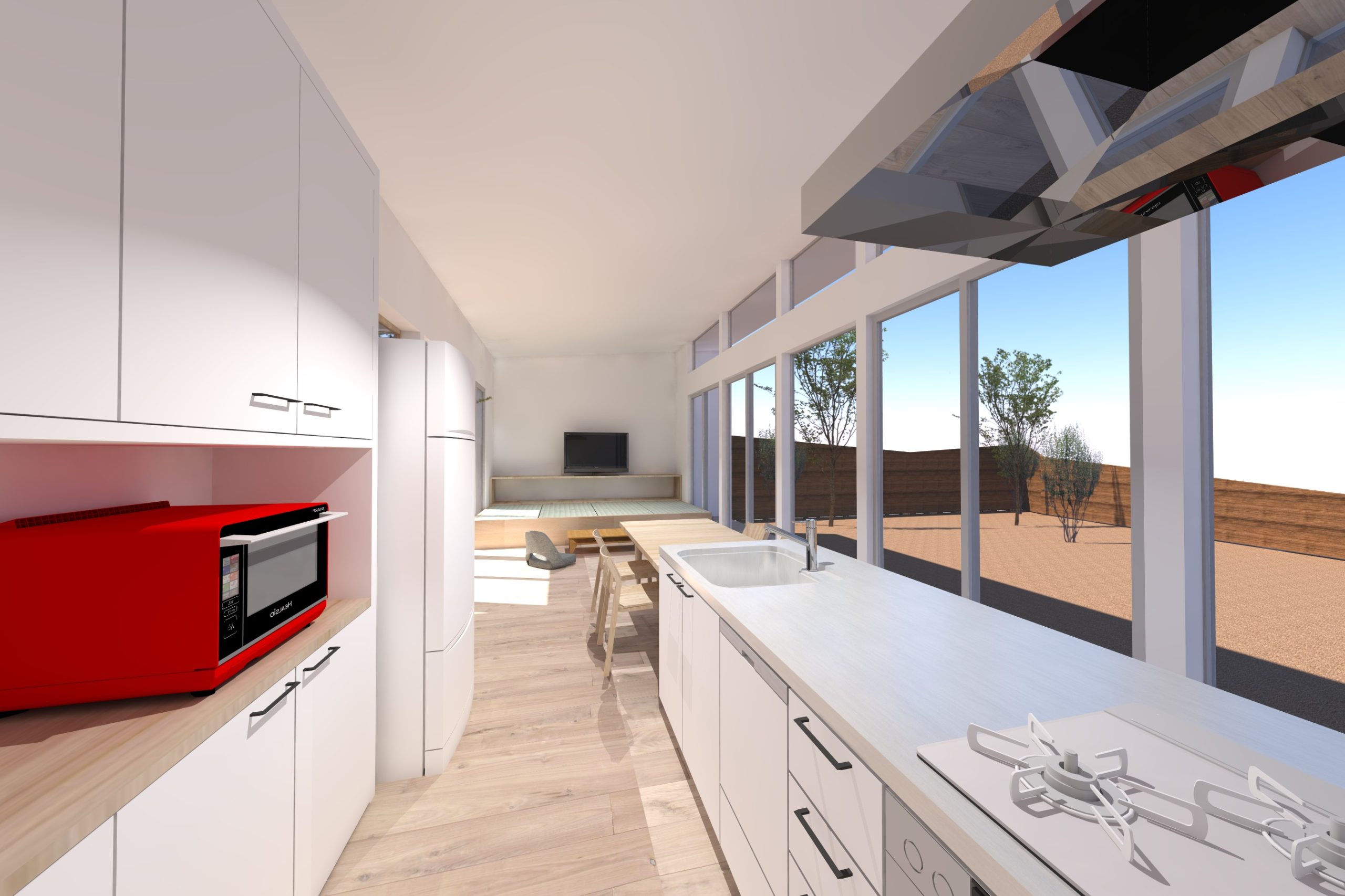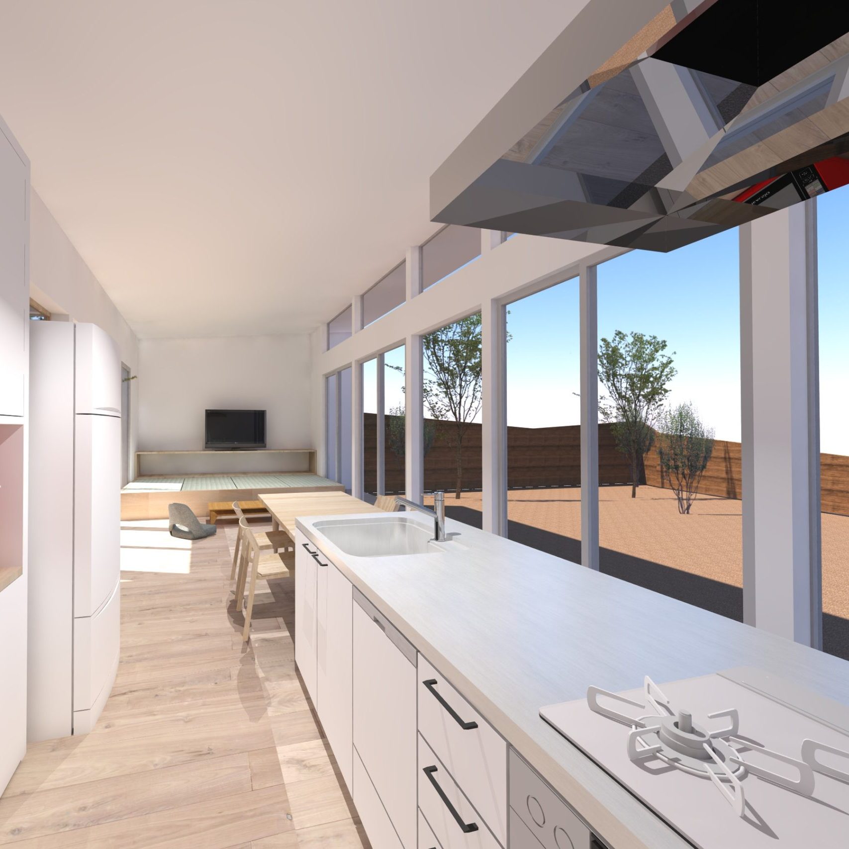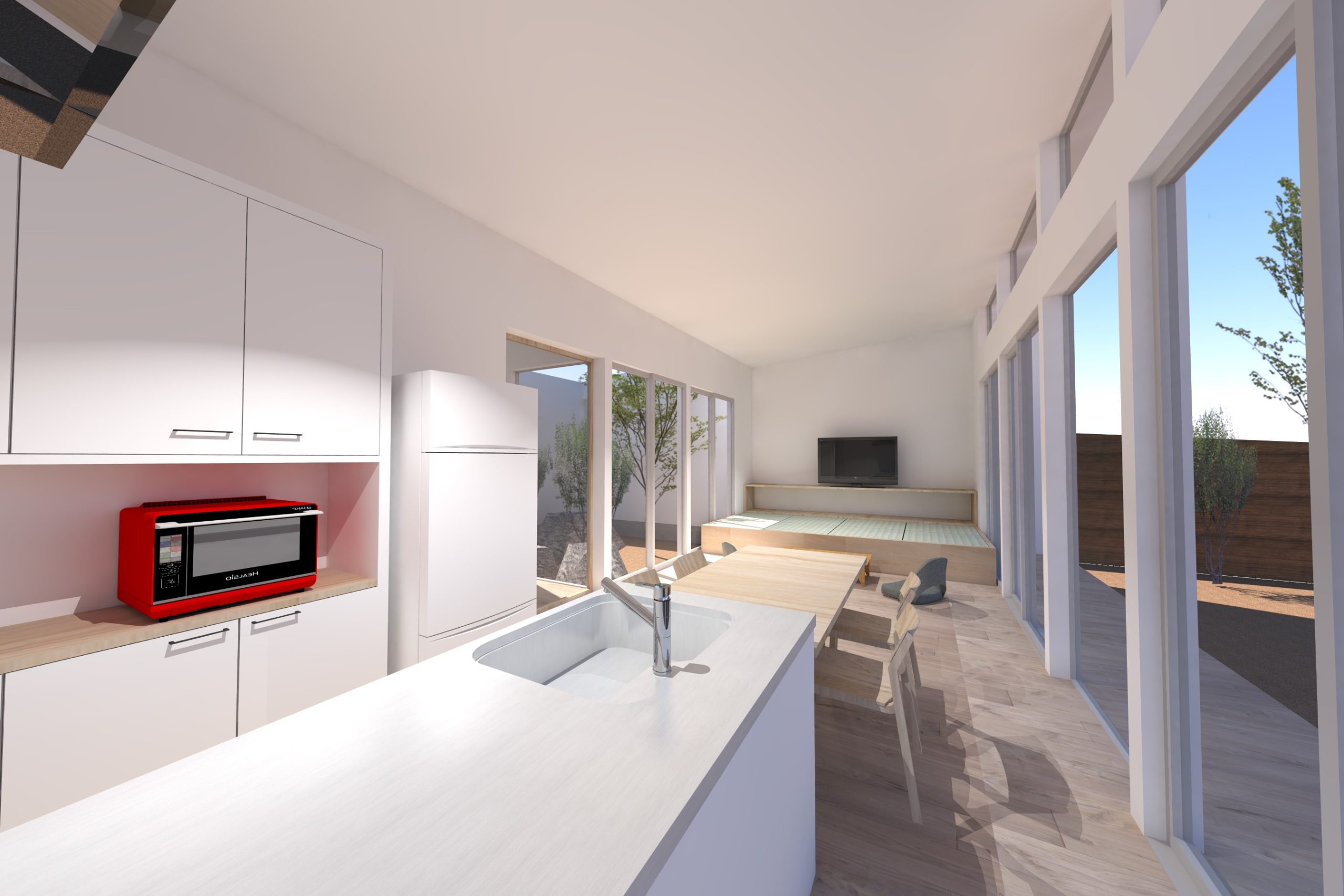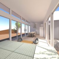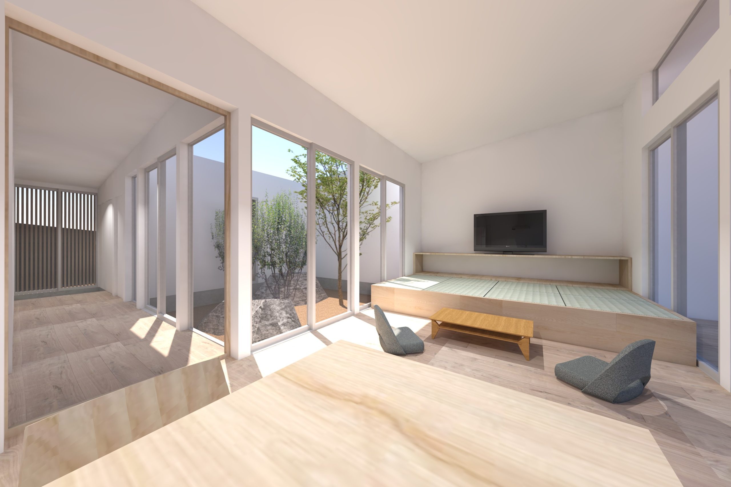 4. 中庭と外庭をつなぐリビングがある平屋の家