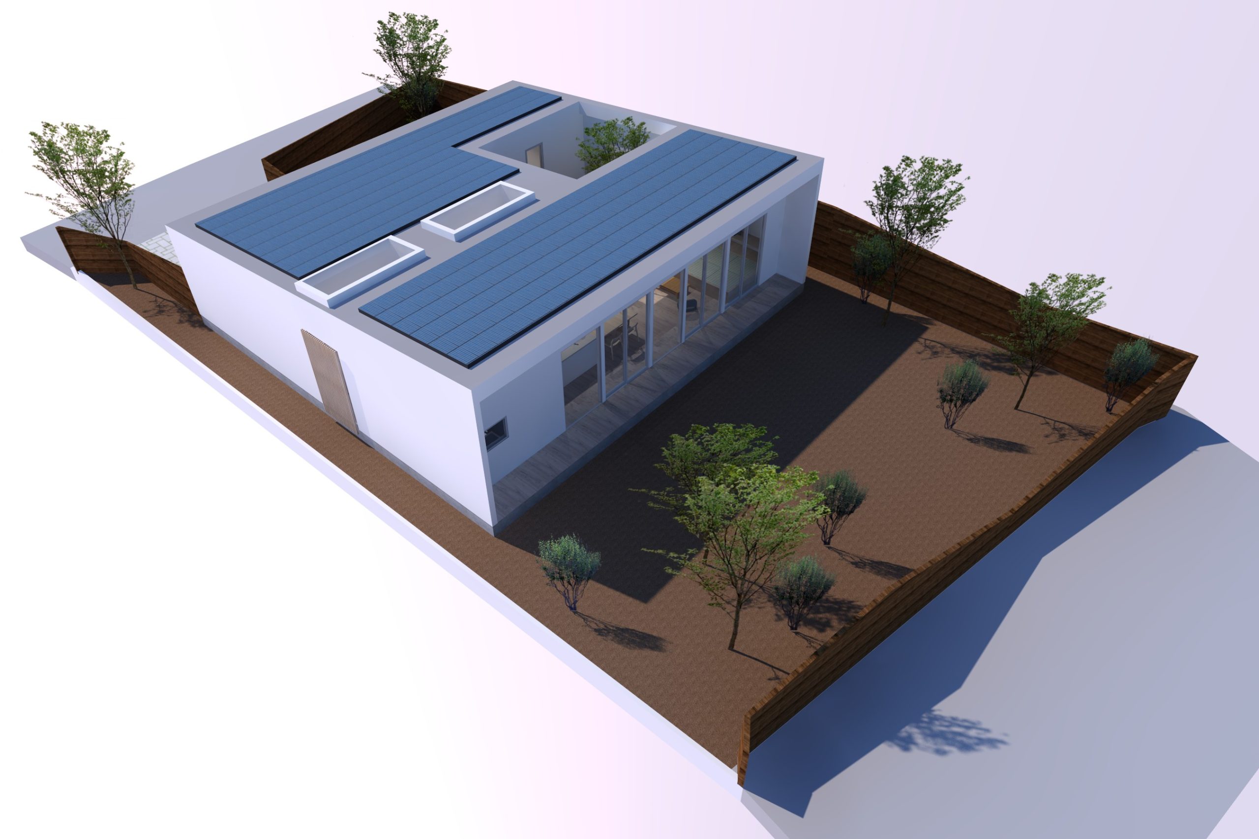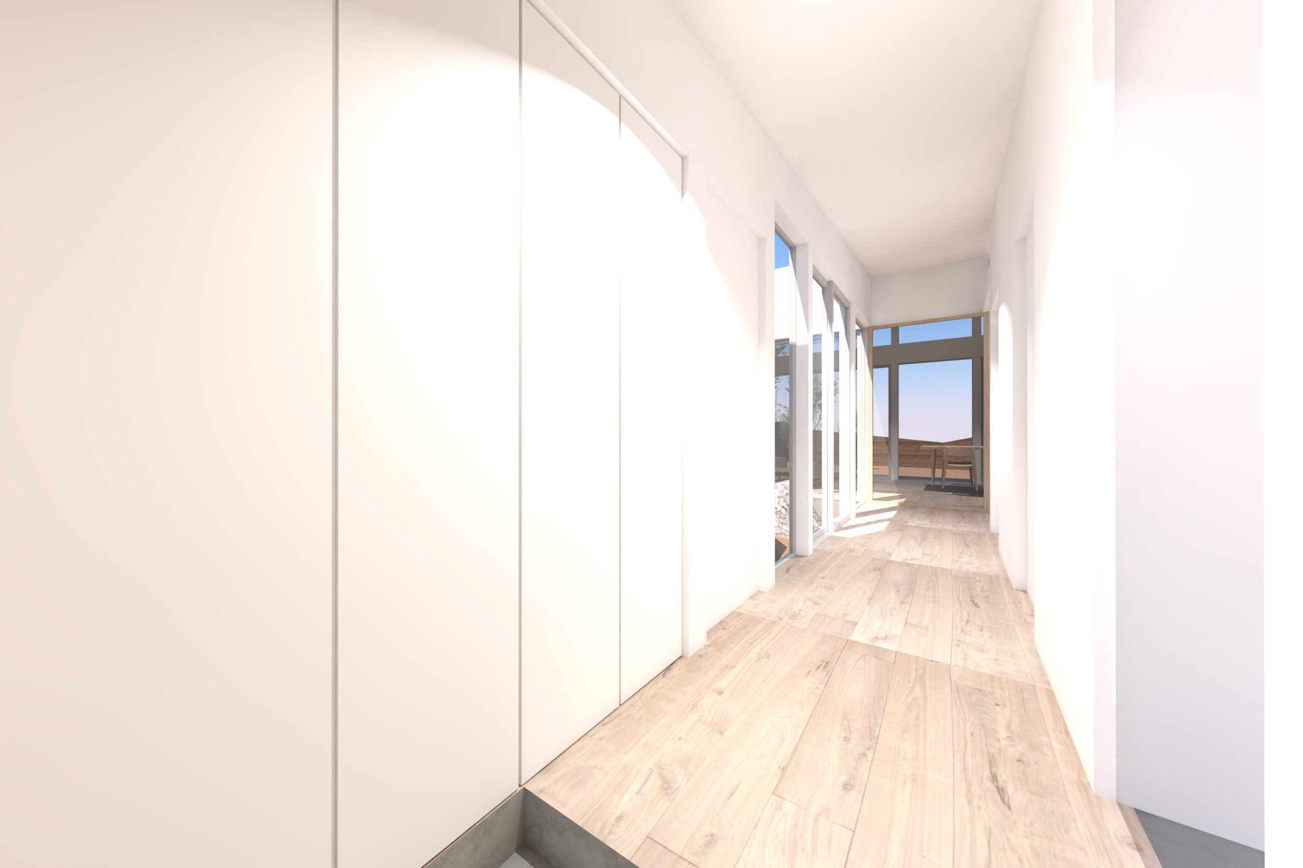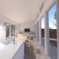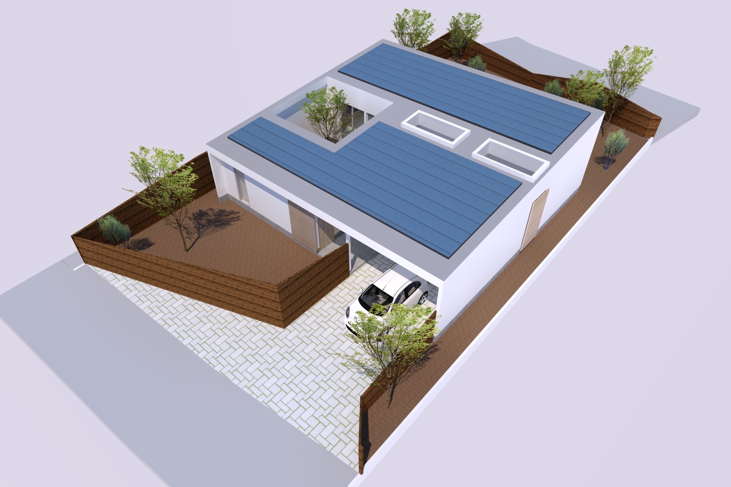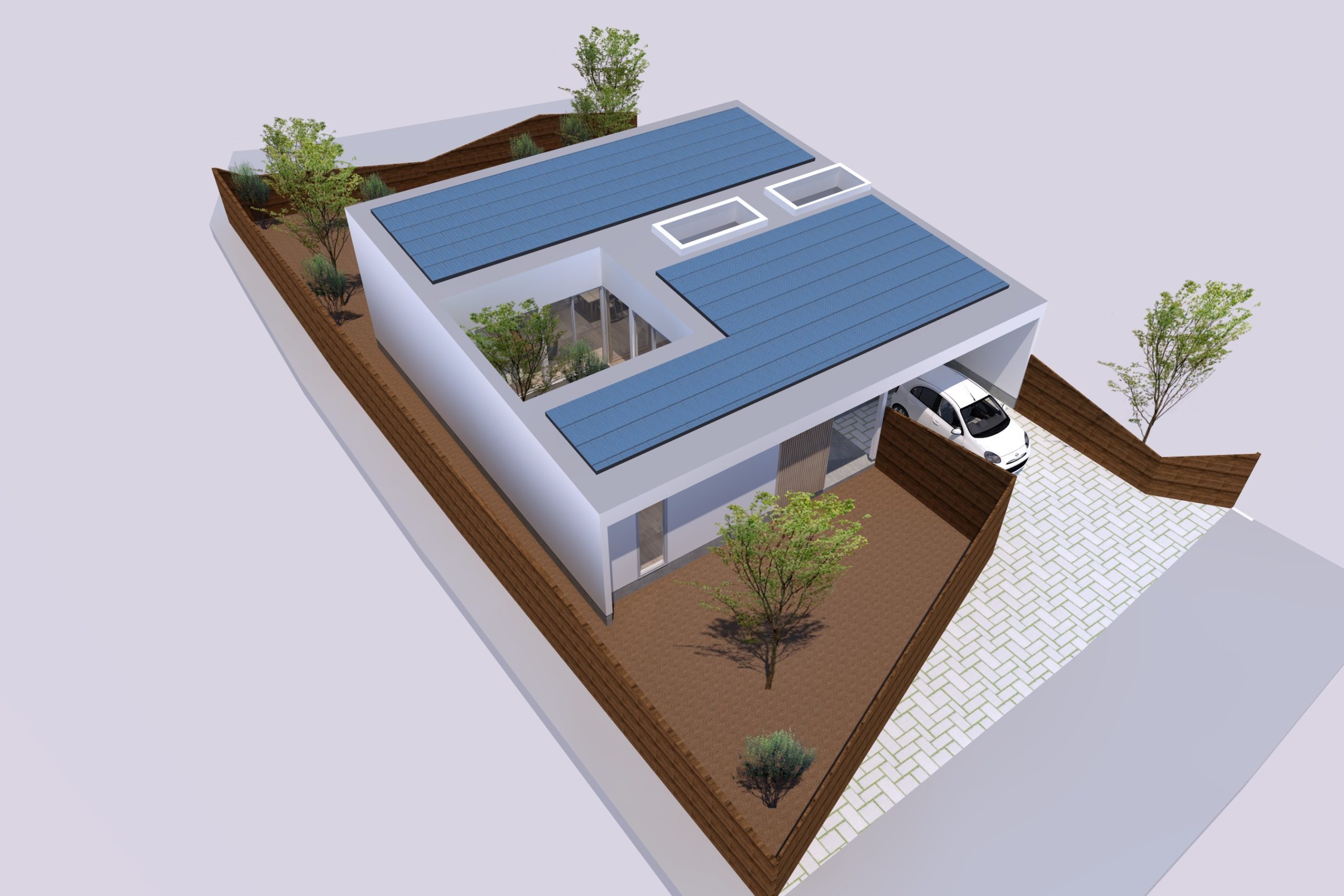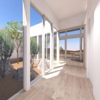 4. 中庭と外庭をつなぐリビングがある平屋の家