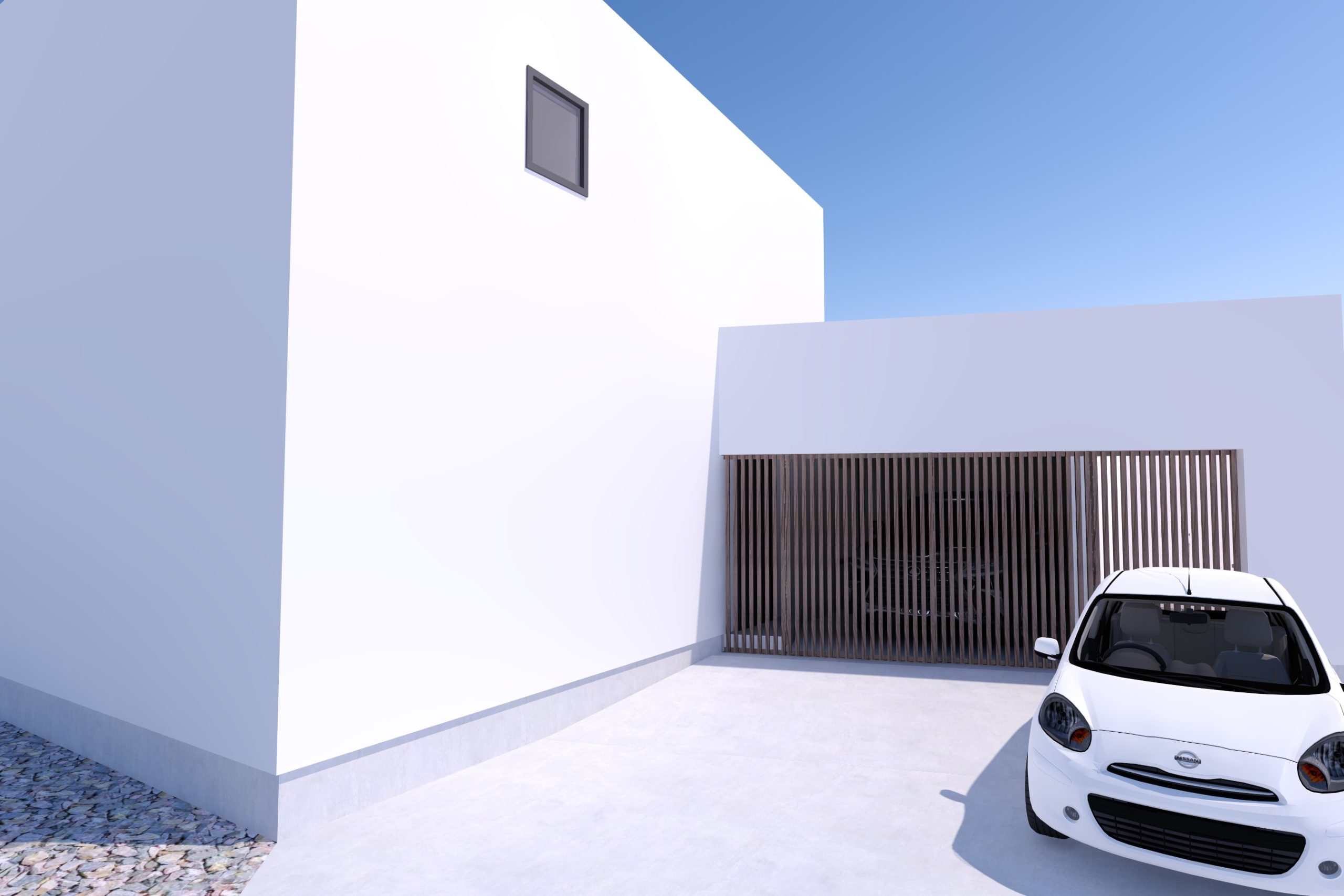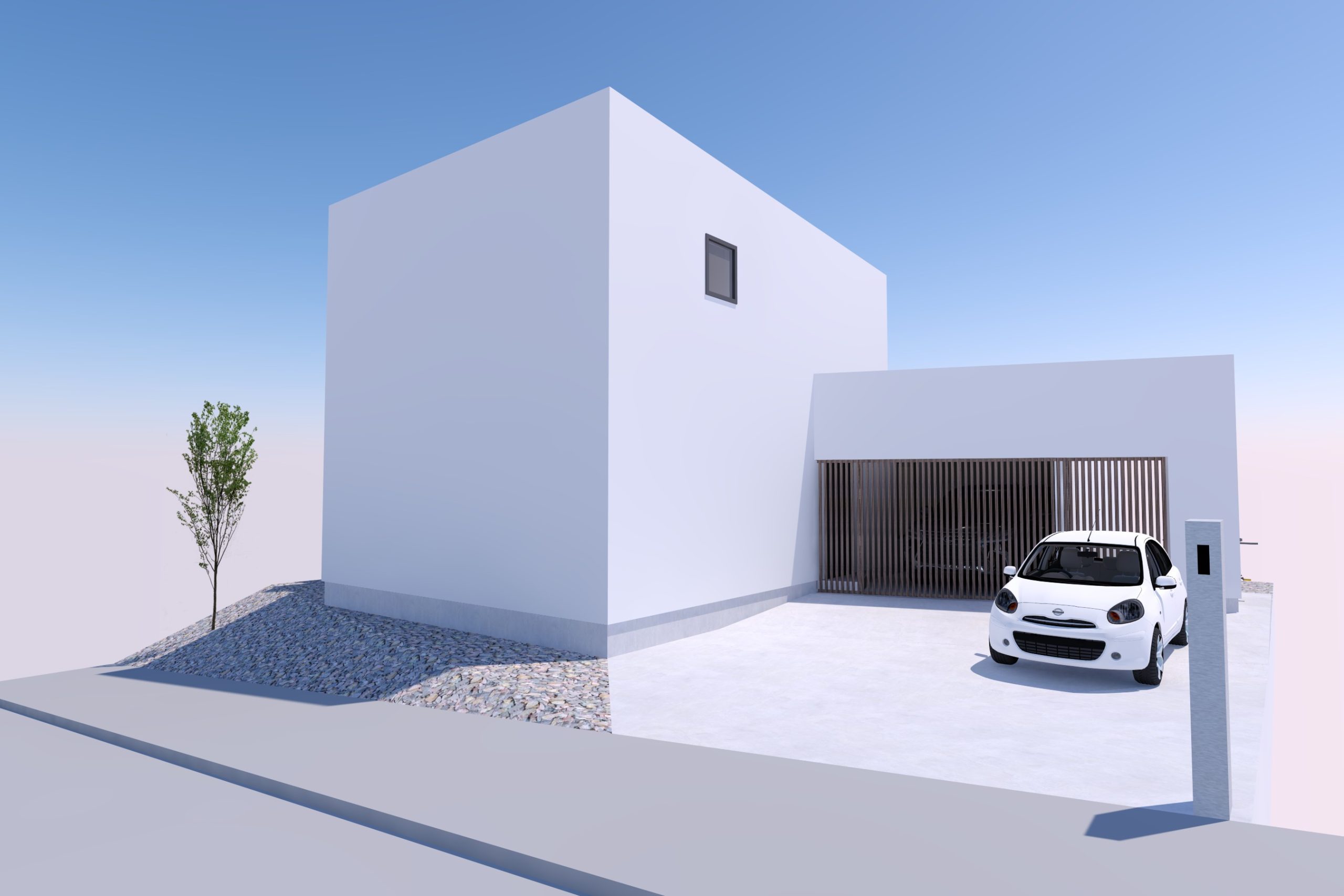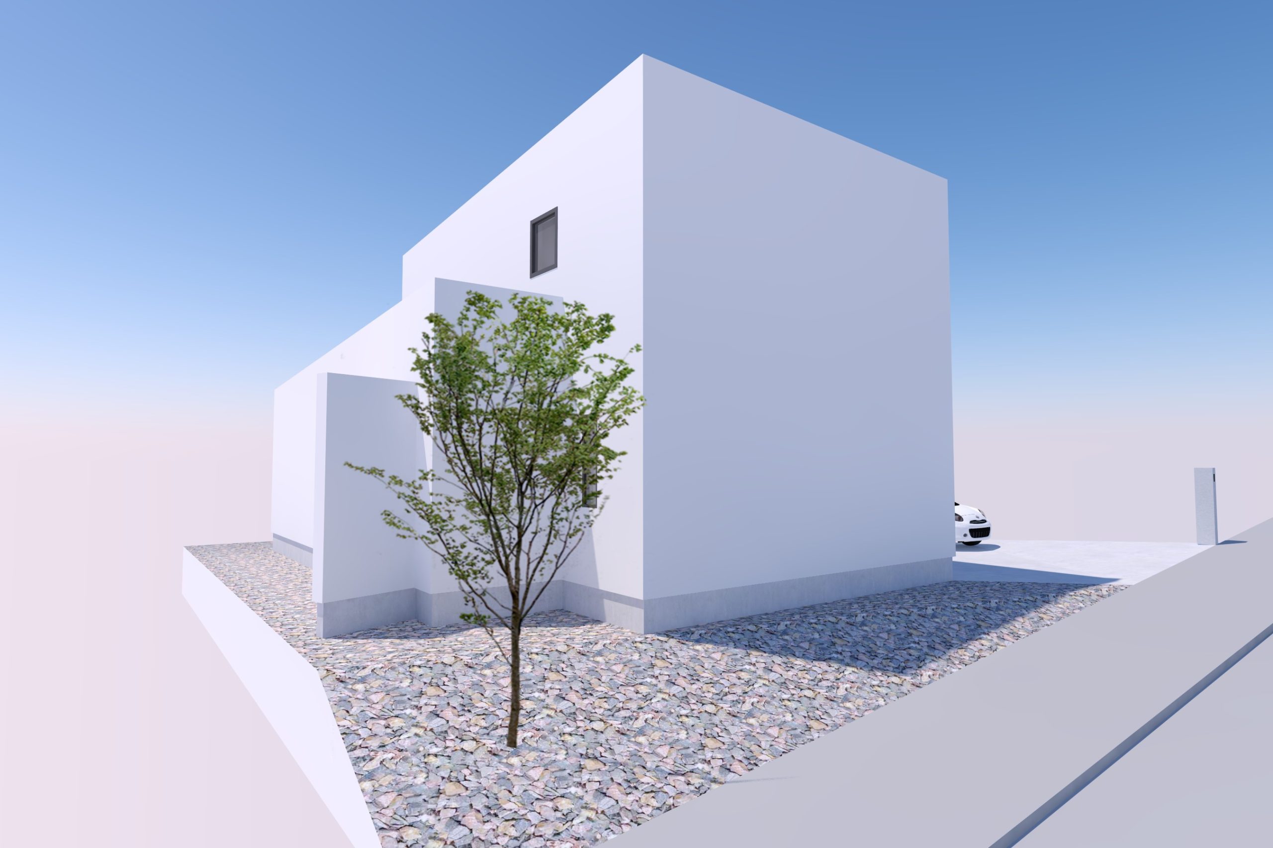 白いキューブと斜めの壁によって生み出されたコートハウス