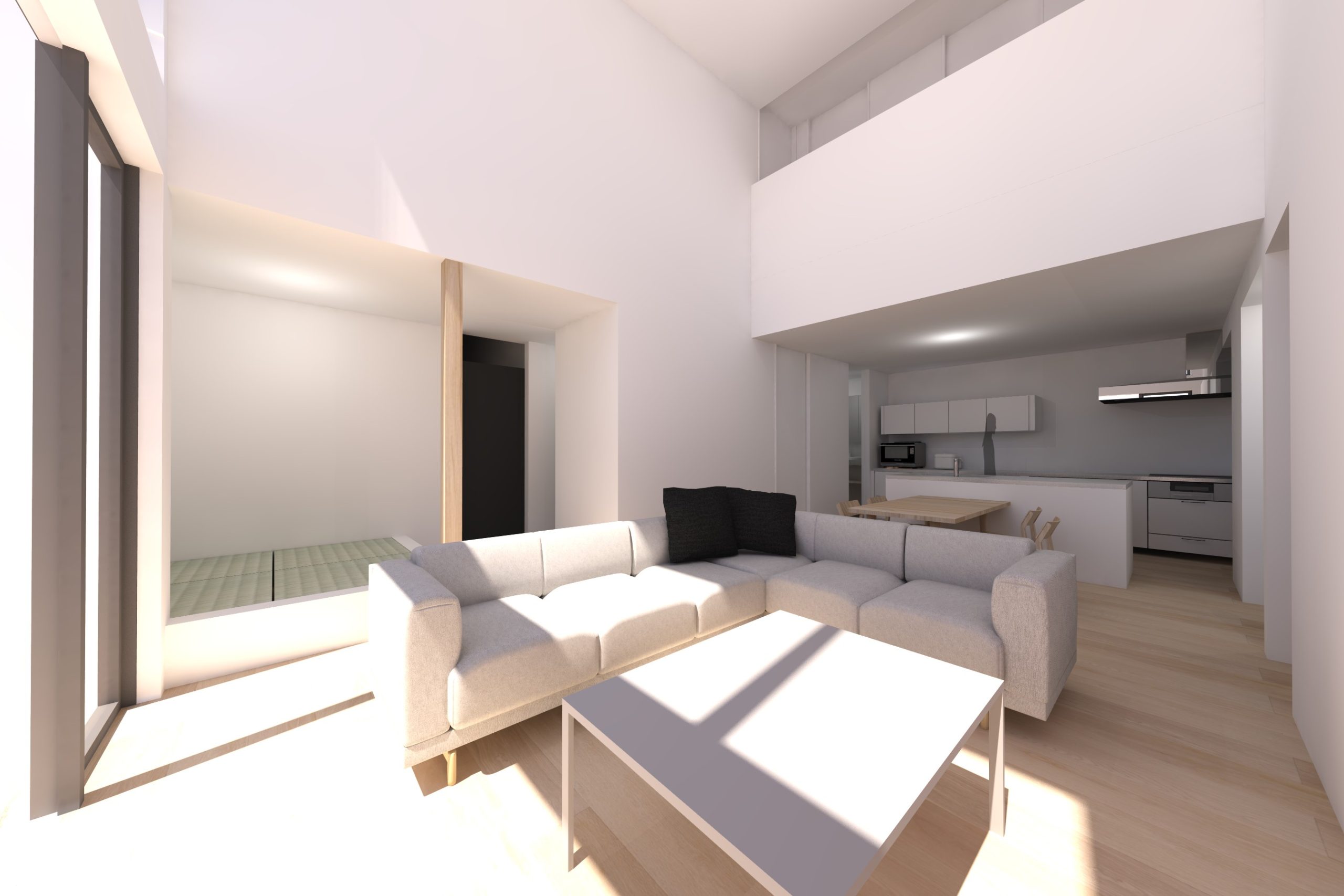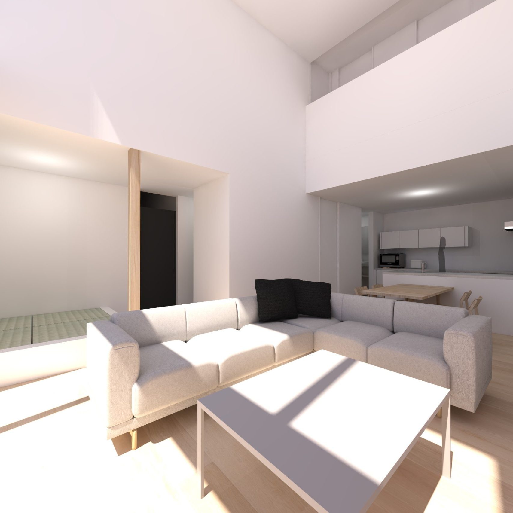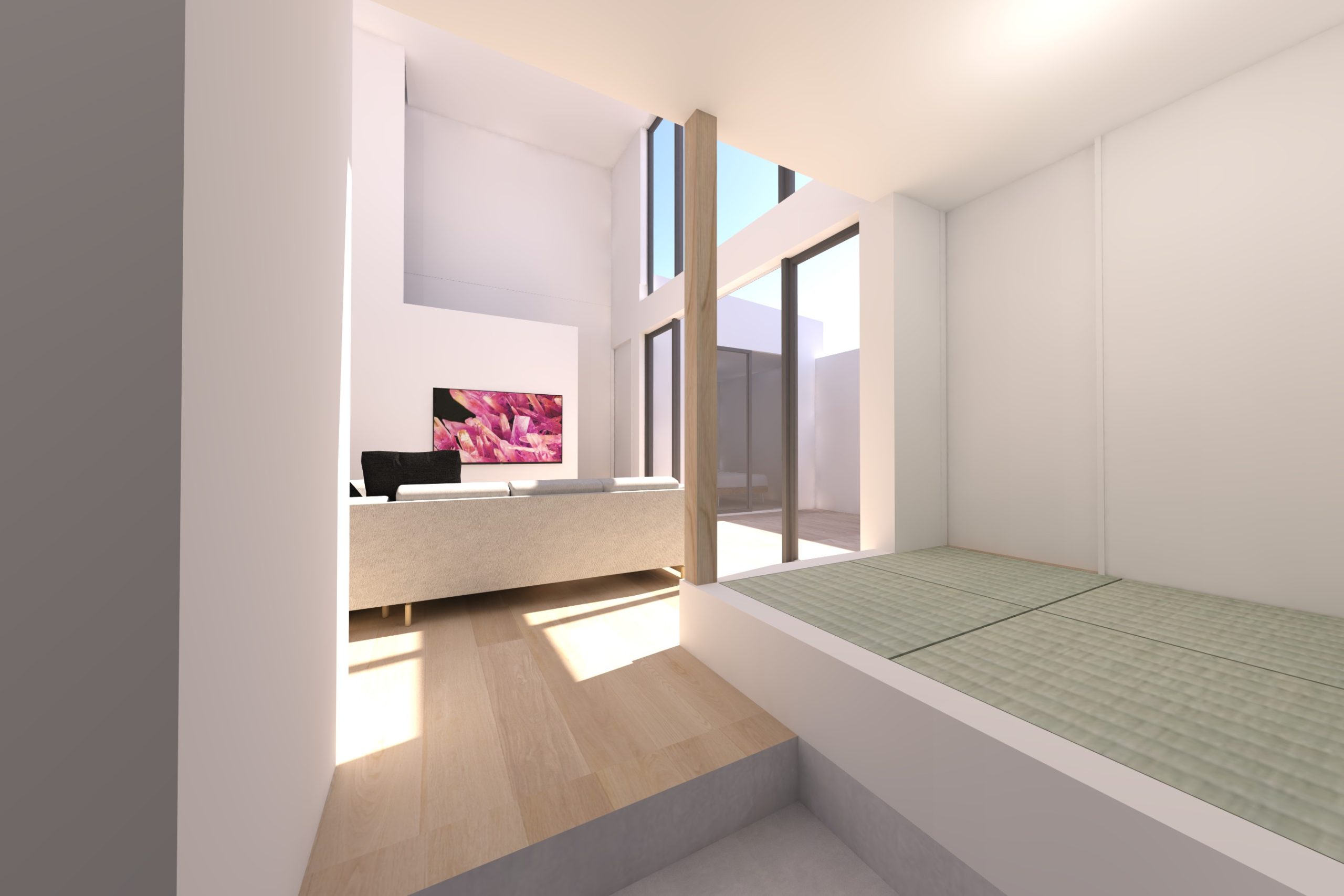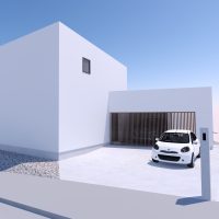 白いキューブと斜めの壁によって生み出されたコートハウス