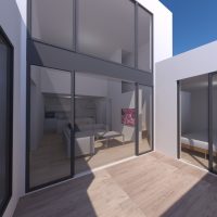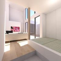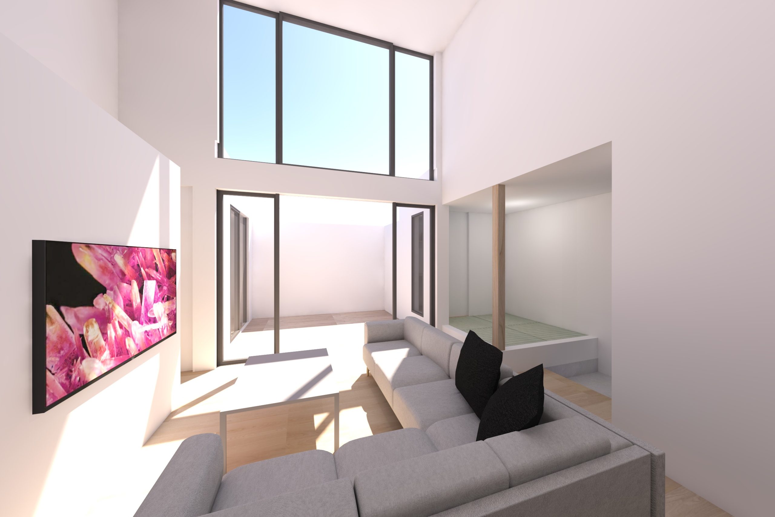 4. 白いキューブと斜めの壁によって生み出されたコートハウス